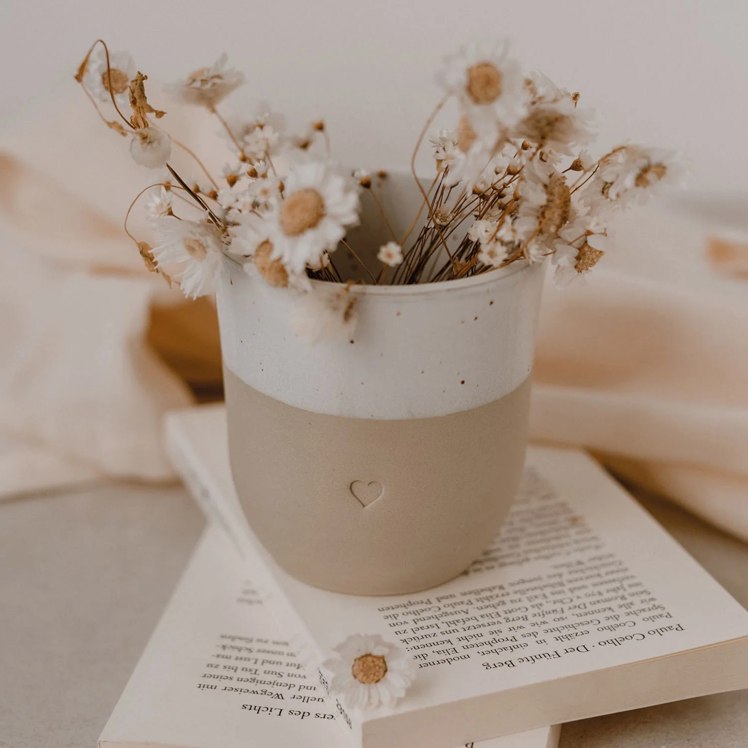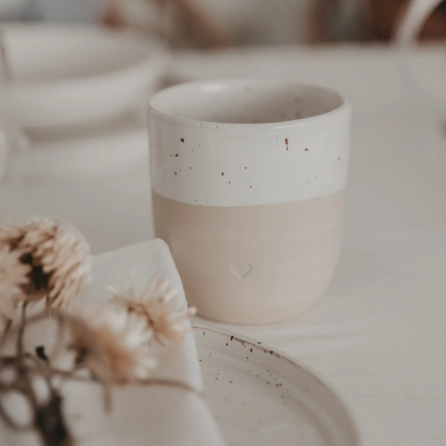 Der Becher Herz aus portugiesischer Handarbeit überzeugt mit minimalistischem Design, natürlichen Farbnuancen und einer schönen Blindprägung in Herzform. Jeder Becher ist ein Unikat mit individuellem Ton & Glasur ideal für den Alltag oder als liebevolles Geschenk.