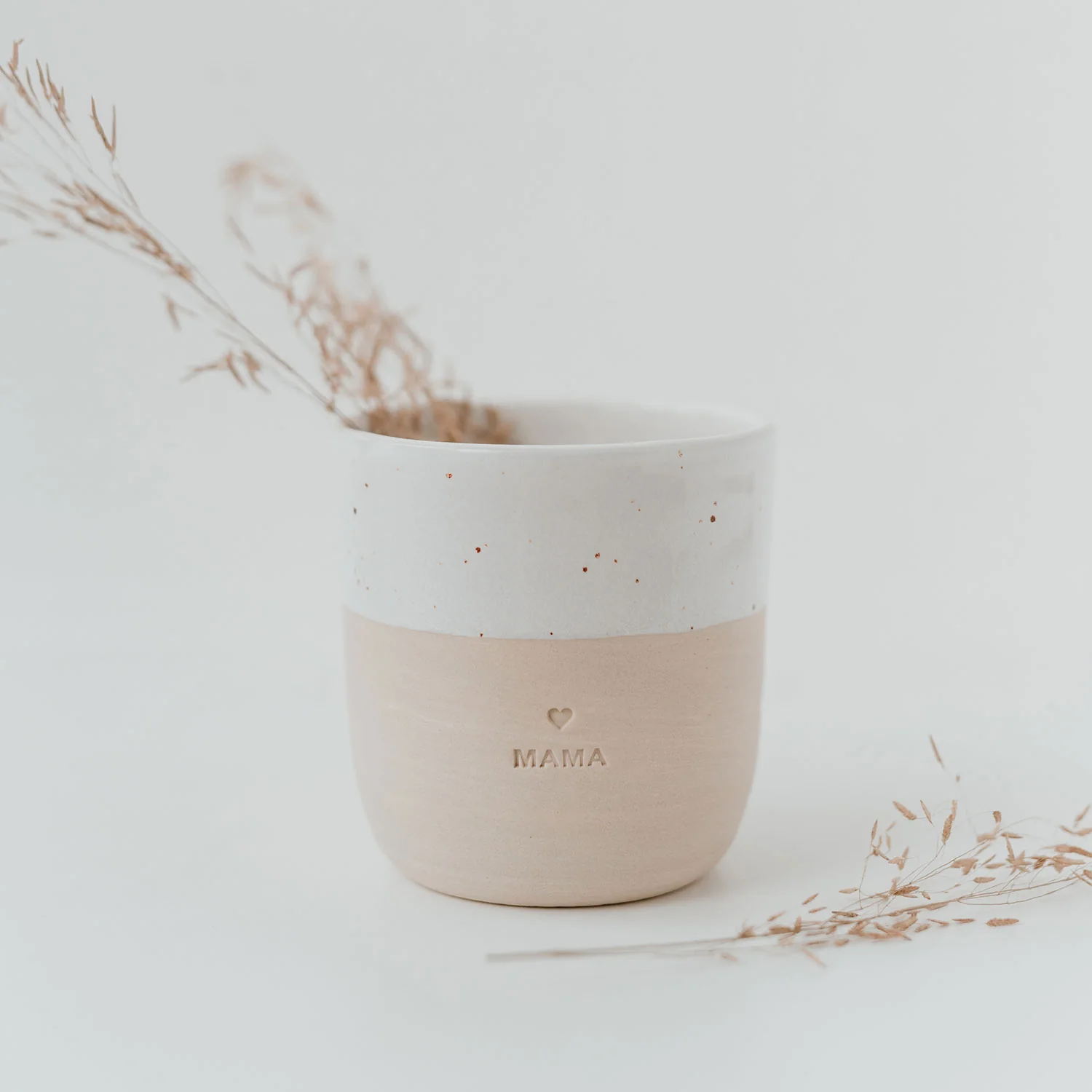Der Becher Mama aus portugiesischer Handarbeit besticht durch minimalistisches Design, natürliche Farbnuancen und eine schöne Blindprägung „Mama“. Jeder Becher ist ein Unikat mit individuellem Ton & Glasur perfekt für den Alltag oder als Geschenk für jede Mami.