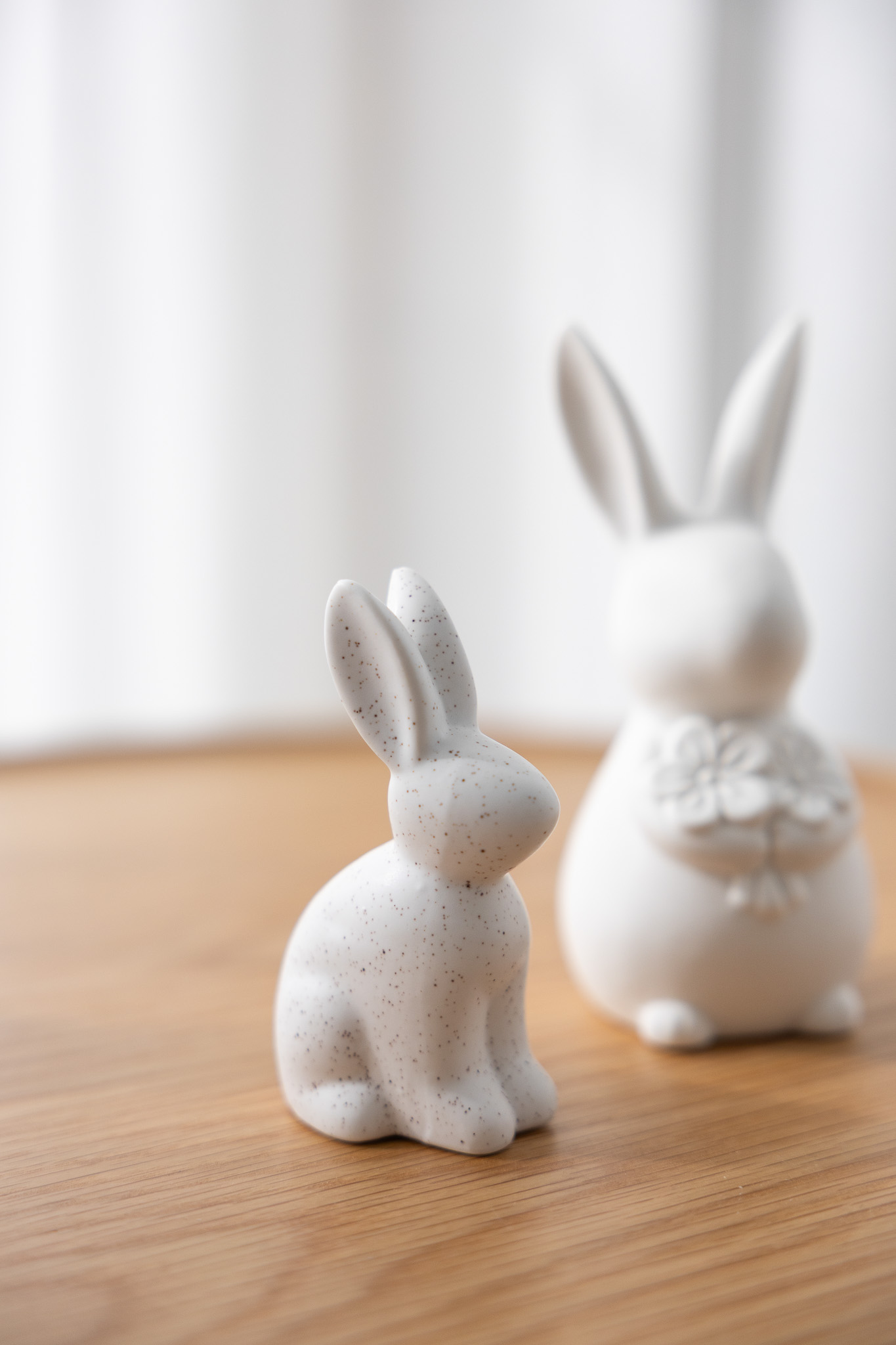 Unser Deko-Hase Ralf aus glasierter Keramik besticht durch sein stilvolles und schlichtes Design. Mit seiner gepunkteten Optik in der Farbe Vanilla ist er ein zeitloser Begleiter für die Osterzeit, der sowohl einzeln als auch in der Gruppe eine gute Figur macht. Da jeder Hase handgefertigt ist, können kleine Unebenheiten oder Pünktchen in der Keramik auftreten, was jedem Stück seinen individuellen Charakter verleiht.