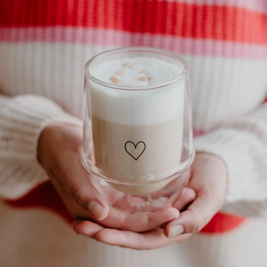 Das doppelwandige Glas Herz ist perfekt für Latte Macchiato oder deinen Lieblingskaffee. Das Doppelwanddesign lässt dein Getränk schweben und schützt deine Finger vor Hitze. Das Herzmotiv macht das Glas besonders charmant.