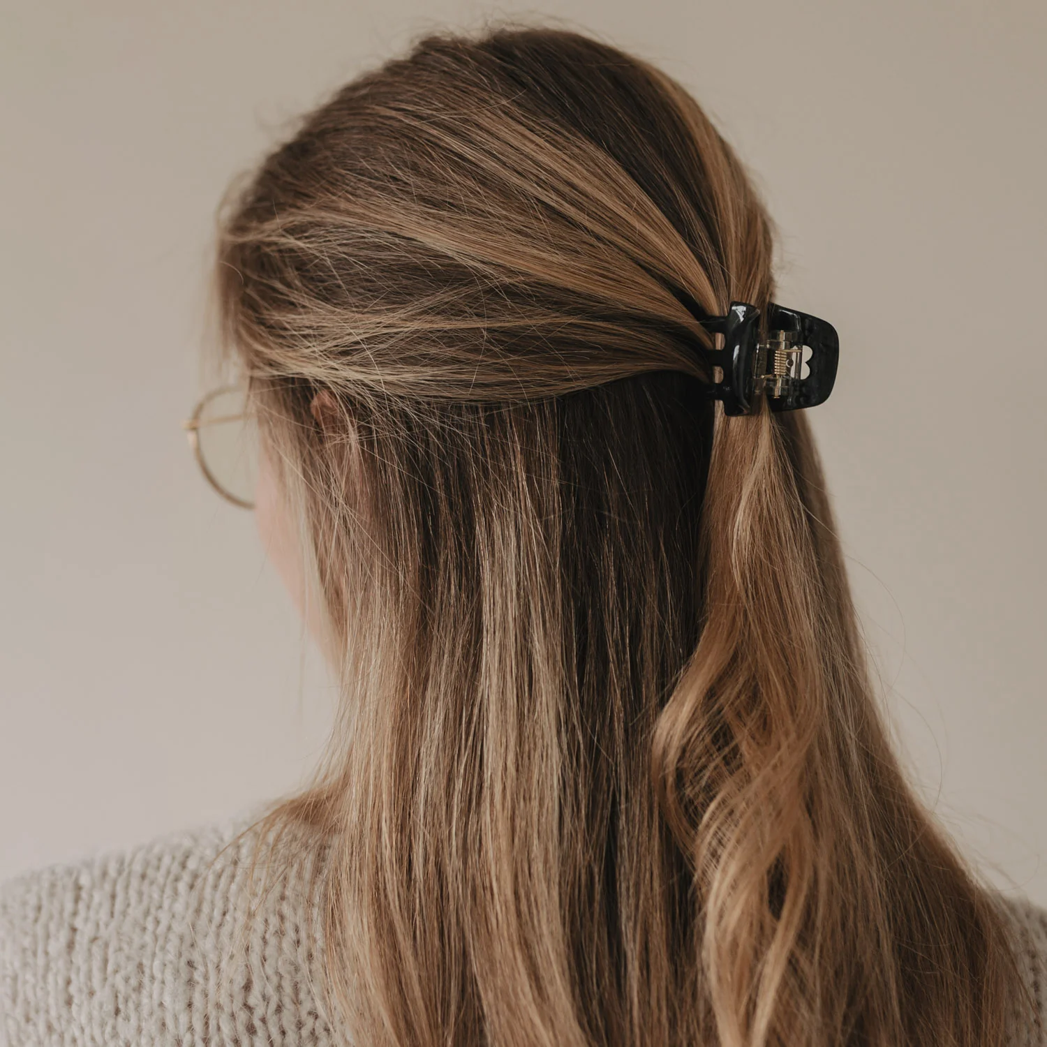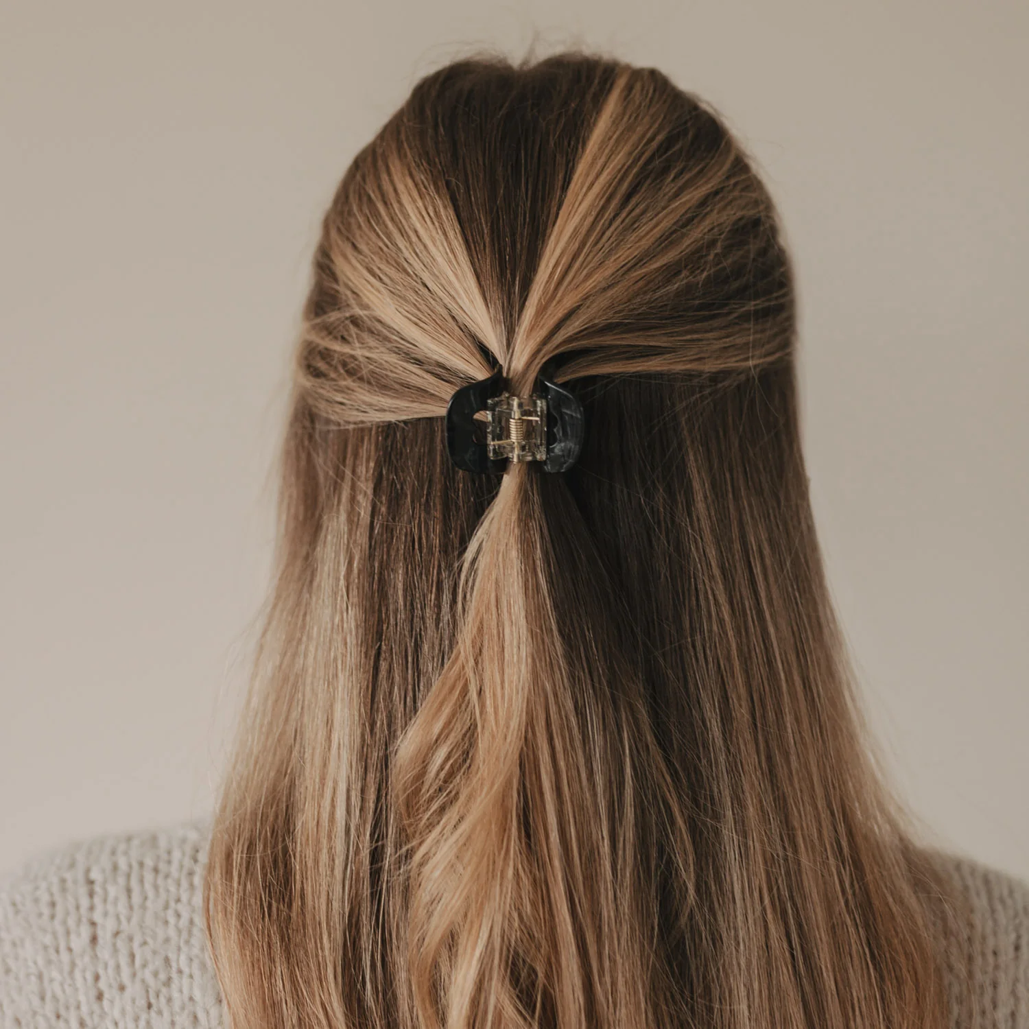 Die kleine Haarspange Herz in der Farbe Night überzeugt mit eleganter, dunkel marmorierter Optik. Sie verleiht jedem Hairstyling eine stilvolle Note und sitzt sicher auf feinem, dickem oder gelocktem Haar. Ideal für Half-Ups, kleine Hochsteckfrisuren oder den Alltag vielseitig, praktisch und elegant.