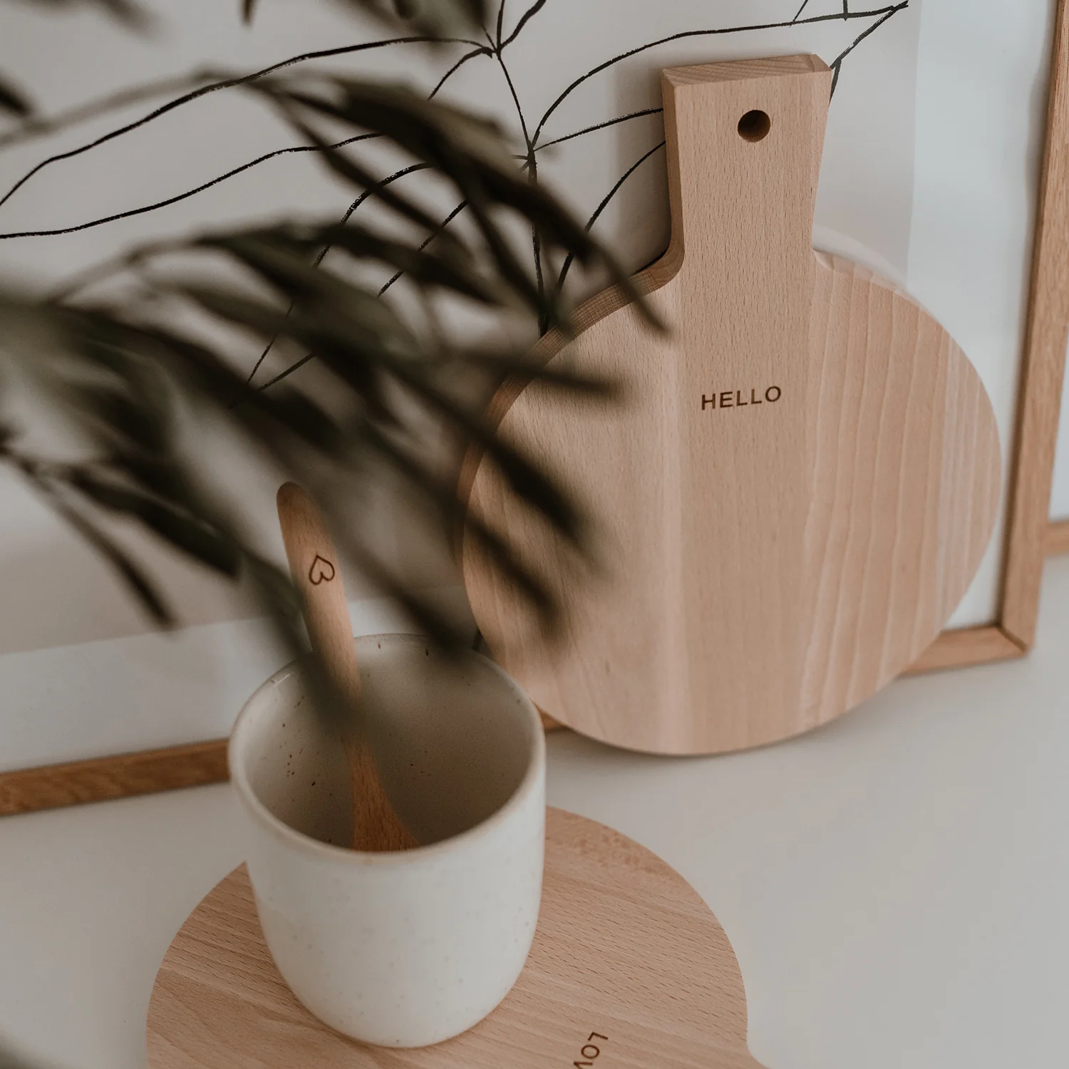 Das 2er Set Mini Brettchen aus Buchenholz ist ideal zum Servieren von Kleinigkeiten oder Deinem morgendlichen Kaffee. Ein Brettchen trägt den handgeschriebenen Schriftzug „Hello“, das zweite „Love“. Auf der Rückseite ist jeweils ein kleines Eulenschnitt-Logo eingraviert. Vielseitig einsetzbar stilvoll, praktisch und perfekt als Geschenk oder für liebevoll dekorierte Leckereien.