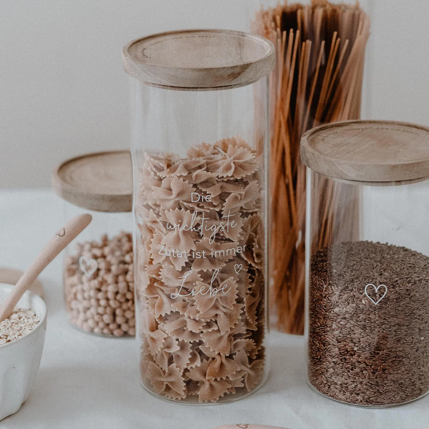 Das Vorratsglas Liebe (25 cm) aus robustem Borosilikatglas mit Akazienholz-Deckel vereint Stil und Funktion. Veredelt mit dem Spruch „Die wichtigste Zutat ist immer Liebe“ und graviertem Deckel mit Logo & Motto „Konfetti für die Seele“. Mit Silikonring für luftdichten Verschluss spülmaschinenfest, nachhaltig und ideal für Zucker, Mehl, Reis oder andere Vorräte.